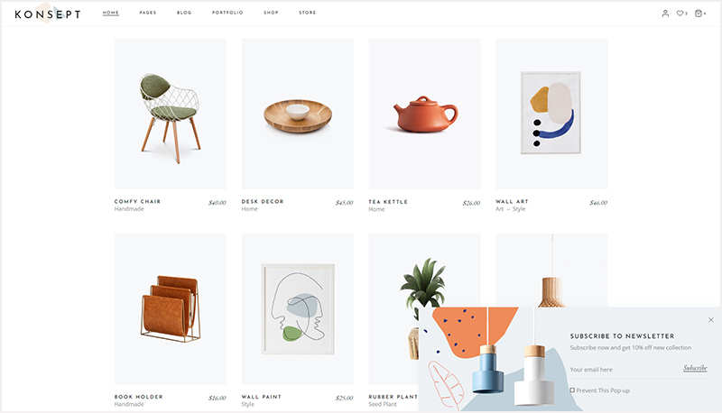 Create eye-catching showcases of what you have in store with Konsept’s amazing assortment of portfolio templates.